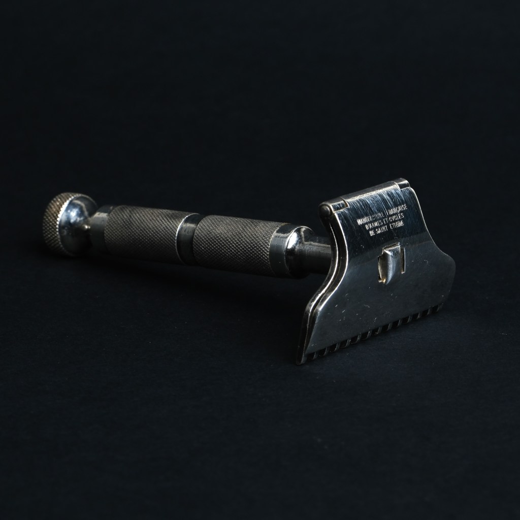This Prima safety razor, made of silver-plated steel, belonged to a lieutenant in the French army