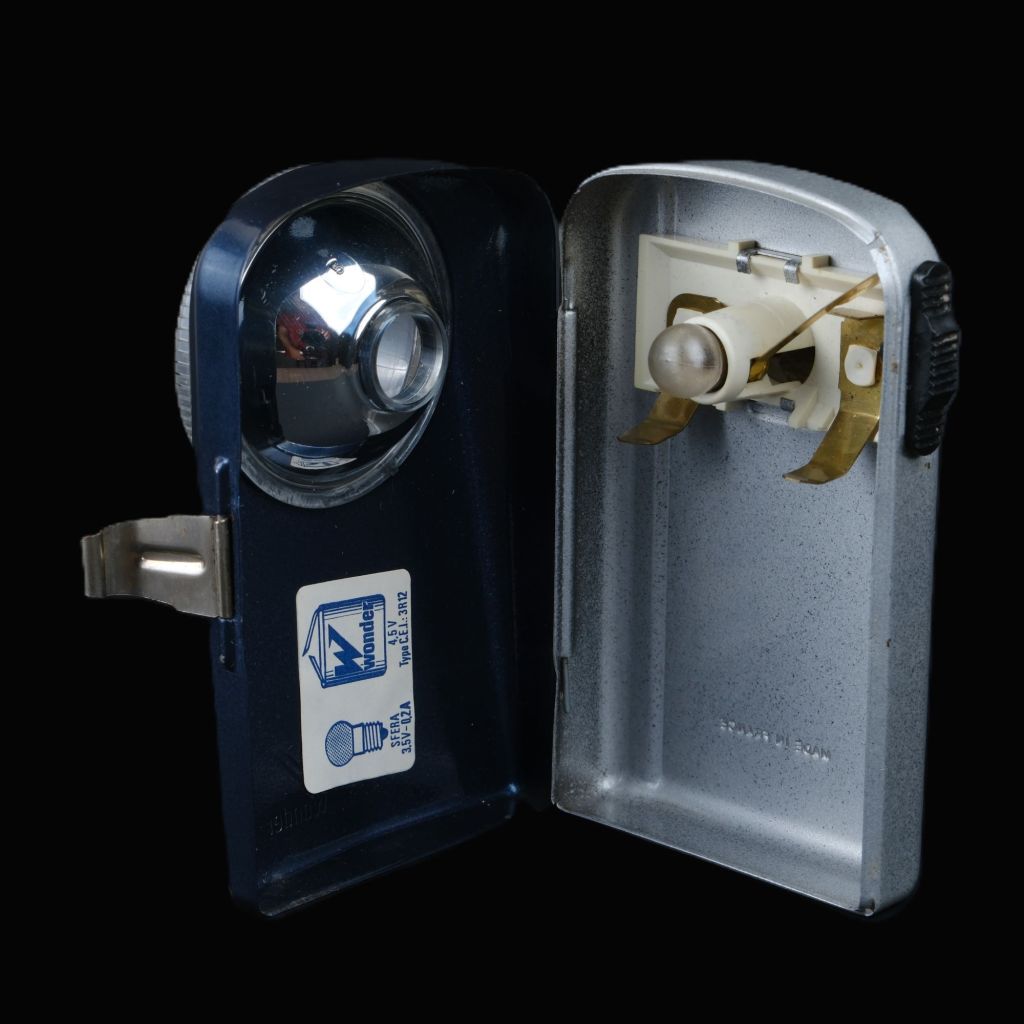 Starting in the 1950s, it offered flashlights like this one, which used a 4.5-volt 3R12 battery. Soon, most French households were equipped with them; this example was used during expeditions to the cellar of a family in Villeurbanne.